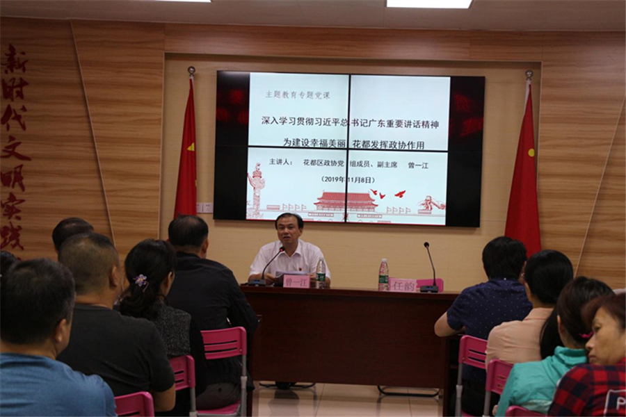 根据成人直播 “不忘初心、牢记使命“主题教育要求,区政协党组成员、副主席曾一江于2019年11月8日到花城街梅花社区为广大党员上了一堂以“深入学习贯彻习近平总书记视察广东重要讲话精神,为建设幸福美丽花都发挥政协作用”为主题,内涵丰富、生动鲜活、党员群众喜闻乐见的党课。
