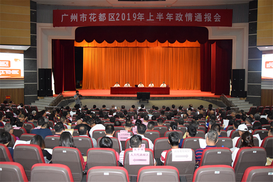 9月27日,2019年上半年政情通报会在区委大礼堂召开。会议通报了区“一府两院”2019年上半年工作情况、《关于花都大道(106国道路口—雅宝新城)规划控制及景观提升》议案办理情况、《关于实施乡村振兴战略,加快推进我区农产品产业园区发展的建议》提案办理情况,区人大常委会主任郭共添主持。
