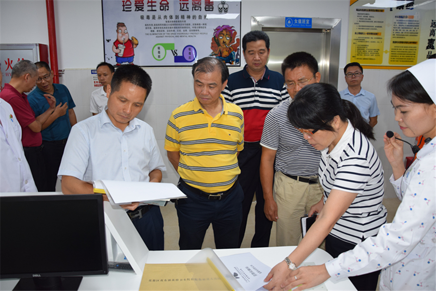 9月10日,广州市增城区政协副主席樊质彬一行8人到我区花东镇花侨医院考察病残吸毒人员收治病区建设和收治情况。成人直播 政协副主席曾一江、社会法制和民族宗教委主任张佐明、区政协副秘书长陈映云,区卫健局副局长向前勇、区禁毒办专职副主任王福锦等相关领导陪同参加考察。