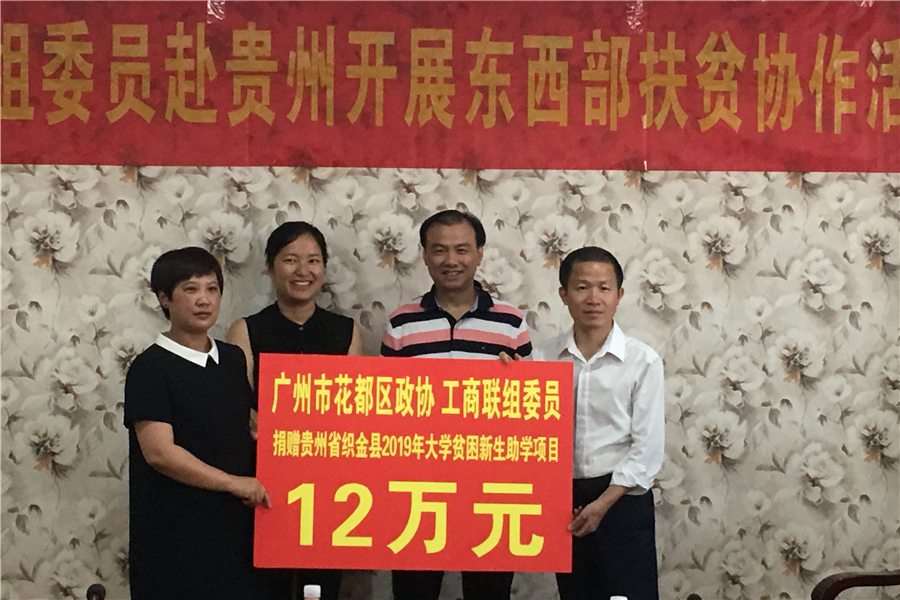 考察期间,政协委员们勇于担当、回馈社会,献爱心送温暖,共向黔西县捐助10万人民币打造中建乡农产品销售平台、12万人民币助学金帮助织金县2019年大学贫困新生完成学业。