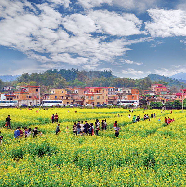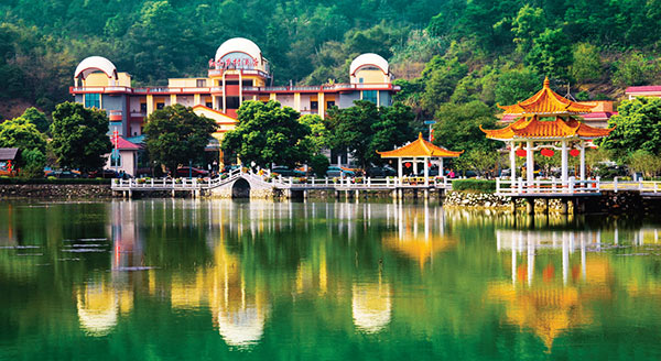 With over 20000 mu(about 13.34 square kilometers) of forests in Hongshan Village, the air is fresh and rich in oxygen ion. good landscape. There arepeach blossoms and rape flowers in the scenic area, and there are five waterfalls including Deep Valley Waterfall, Red Valley Waterfall, ShishangbeiWaterfall, Shallow Valley Waterfall and Tonggutan Waterfall, and two parks, which are Zhongguding Peak Garden, Taxus chinensis Culture Park Thevillage has good landscape with peach blossons and nape flowers. There are five ratefalls indreling. Now it has a greenway of over 20km for the visitors to go hiking. The Hongshan Village offers bicycle rental service. It has restaurants with Hakka customs, Hakka specialty markets and Hakka snacks gourmet streets.