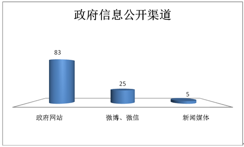 在主动公开信息工作中,通过不同渠道和方式公开政府信息情况:政府网站公开信息83条,微博、微信公开信息25条,新闻媒体公开信息5条。