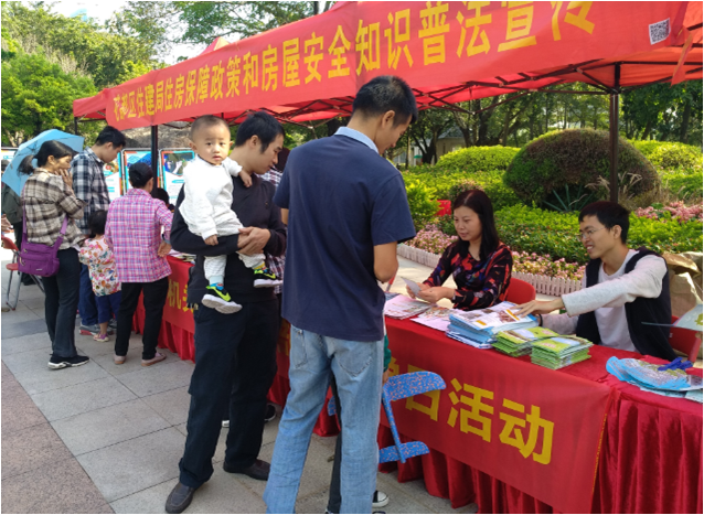 为贯彻落实党的十九大精神,加快社会保障体系建设,积极开展公共租赁住房保障的相关政策和房屋安全法律法规知识宣传,扩大市民朋友对政策的认知度,区住房城乡建设局于11月9日在人民公园西广场举办了住房保障政策和房屋安全知识普法宣传活动。