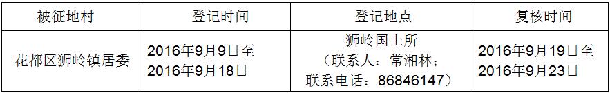狮岭镇居委属下的集体土地0.3376公顷(合5.0640亩)征收为国有土地。现将经依法批准的《征收土地方案》和市人民政府批准的《征地补偿安置方案》内容和有关事项公告如下: