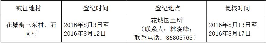 经省人民政府批准(粤国土资(建)字〔2016〕280号文),需将广州市成人直播 花城街三东村、石岗村属下的集体土地3.4306公顷(合51.459亩)征收为国有土地。现将经依法批准的《征收土地方案》和市人民政府批准的《征地补偿安置方案》内容以及有关事项公告如下: