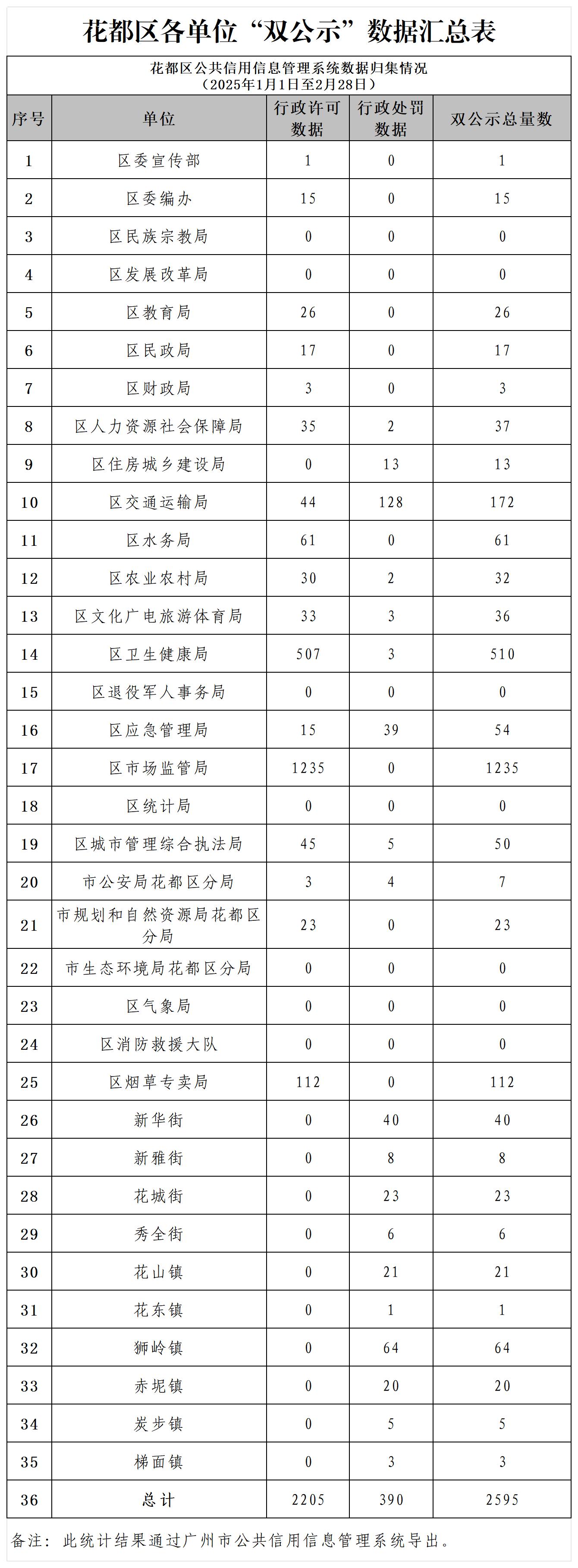 成人直播 2025年2月各单位“双公示”数据汇总表