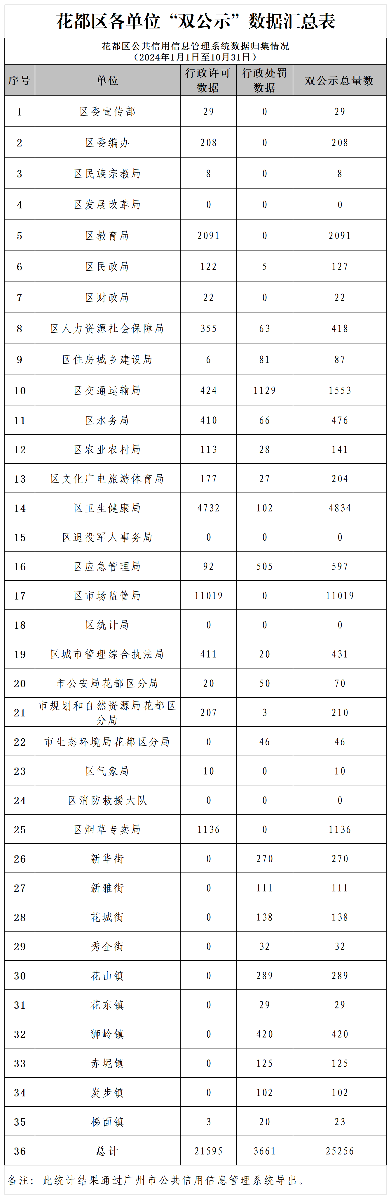 成人直播 2024年10月各单位“双公示”数据汇总表